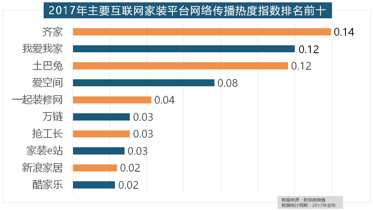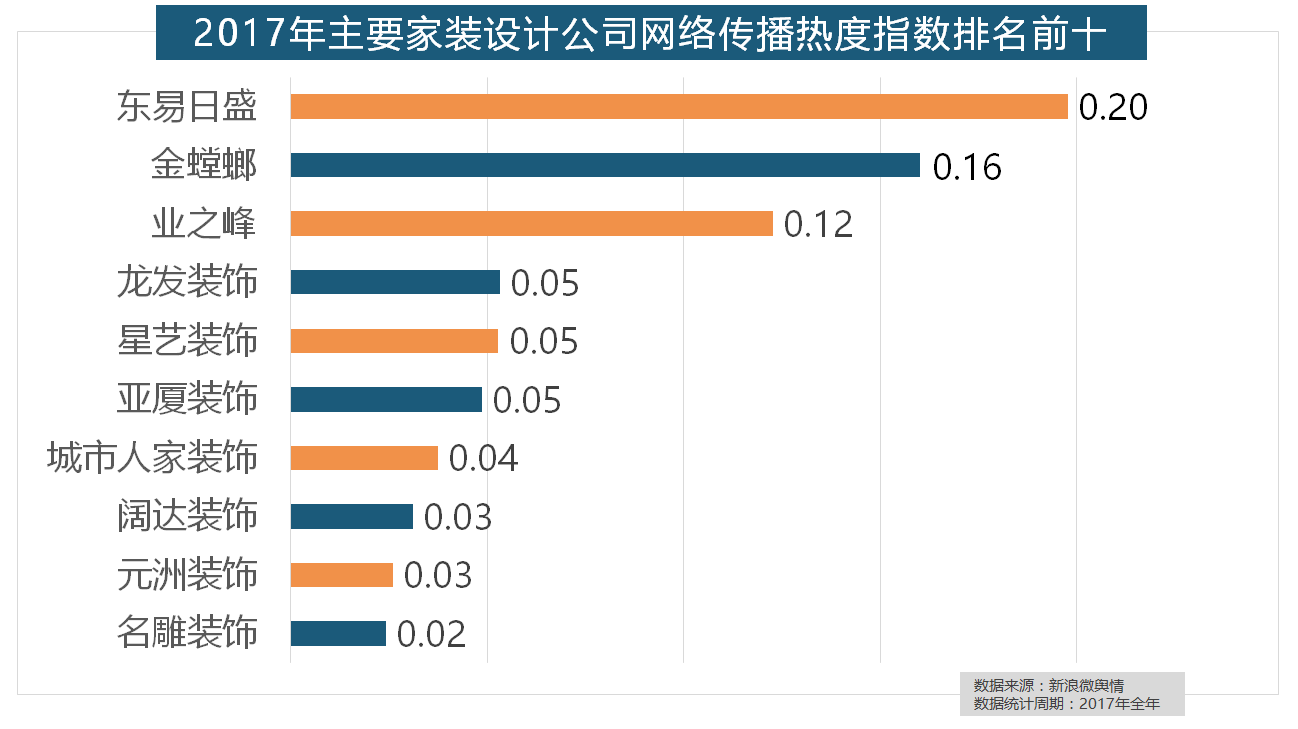 正在家拆次要关心点方面,2017年,东易日盛正在过去的一年中收集热度指数最高,全网消息量则同比大涨54.25%。位列年度家拆设想公司热度排行榜六至十位。
