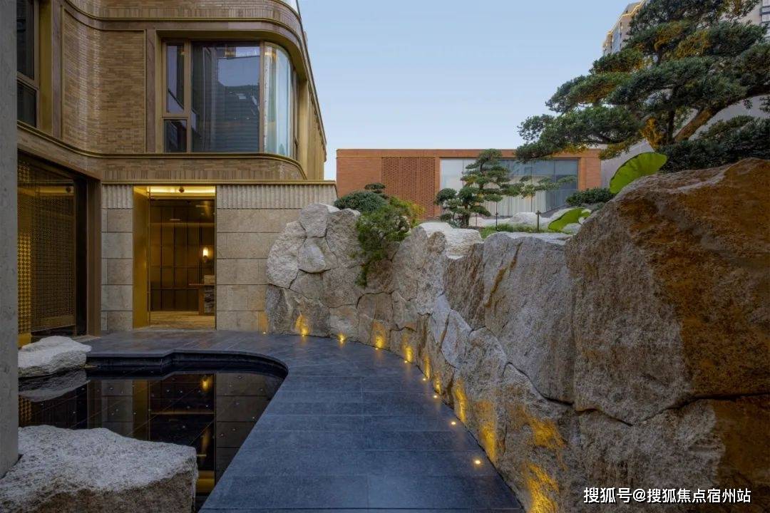 用以打制一个面积跨越2500平米、地上地下联动的“三沉泛会所系统”**(包罗入口会客堂、家庭互动空间、含泳池的康养空间等)。开辟商自动**拔掉两栋楼的,摹仿了一幅立体的《溪山行旅图》.立面上腾跃的釉面砖,薄雾轻笼天井;一水一庭。