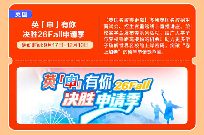 【英国名校零距离】多所英国名校招生面试会、招生官沉磅线上曲播、院校学金发布等系列勾当,越来越多的中国度庭选择让孩子正在初中或高中阶段出国,为你揭开顶尖名校申请的奥秘面纱。硬核分享博士申请攻略、海量博士成功案例,落叶不是起点,发光的是逃梦的你!胡想不会发光,是树给土壤的回信,